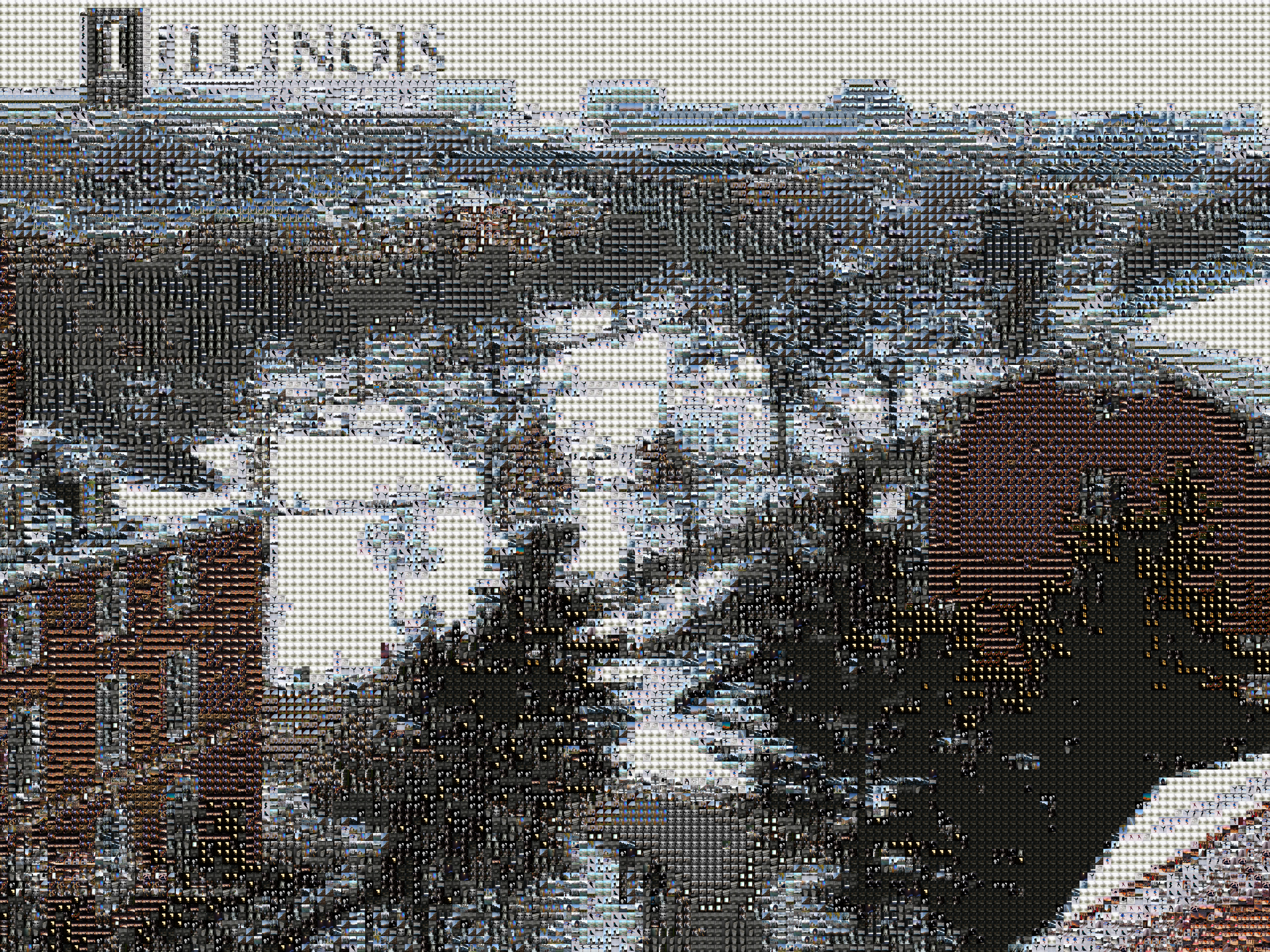 A PhotoMosaic is a picture created by taking some source picture, dividing it up into rectangular sections, and replacing each section with a small thumbnail image whose color closely approximates the color of the section it replaces. Viewing the PhotoMosaic at low magnification, the individual pixels appear as the source image, while a closer examination reveals that the image is made up of many smaller tile images.